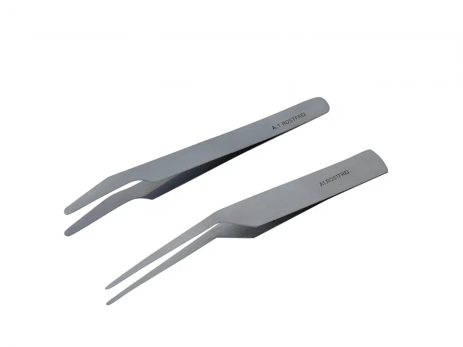 - 1 Set = 2 verschiedene Pinzetten: 1x spitz, 1x stumpf.