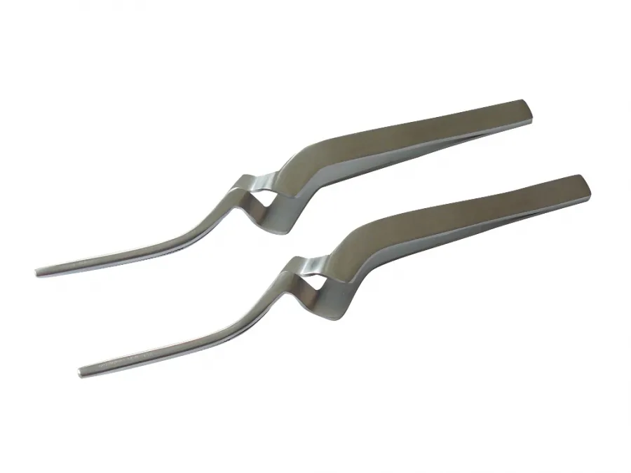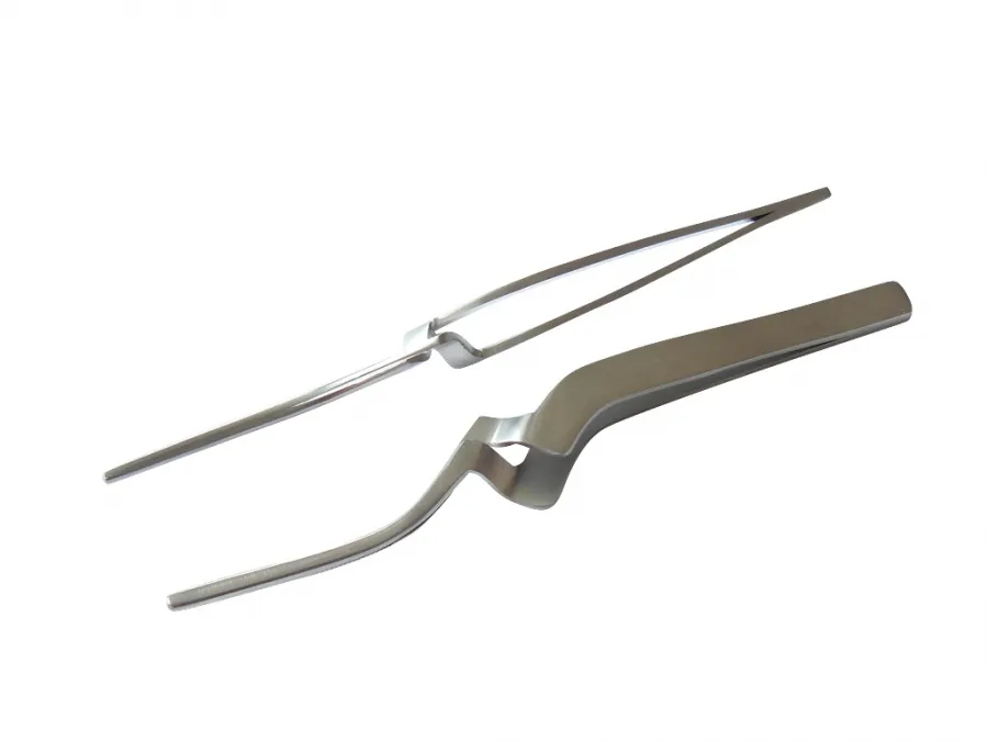 - Selbsthaltende Pinzette, gebogen, quergerieft