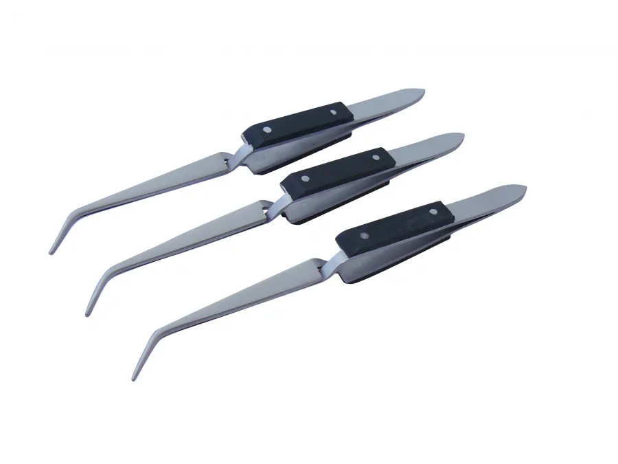 3x Lötpinzette Klemmpinzette Kreuzpinzette, gebogen, gerieft